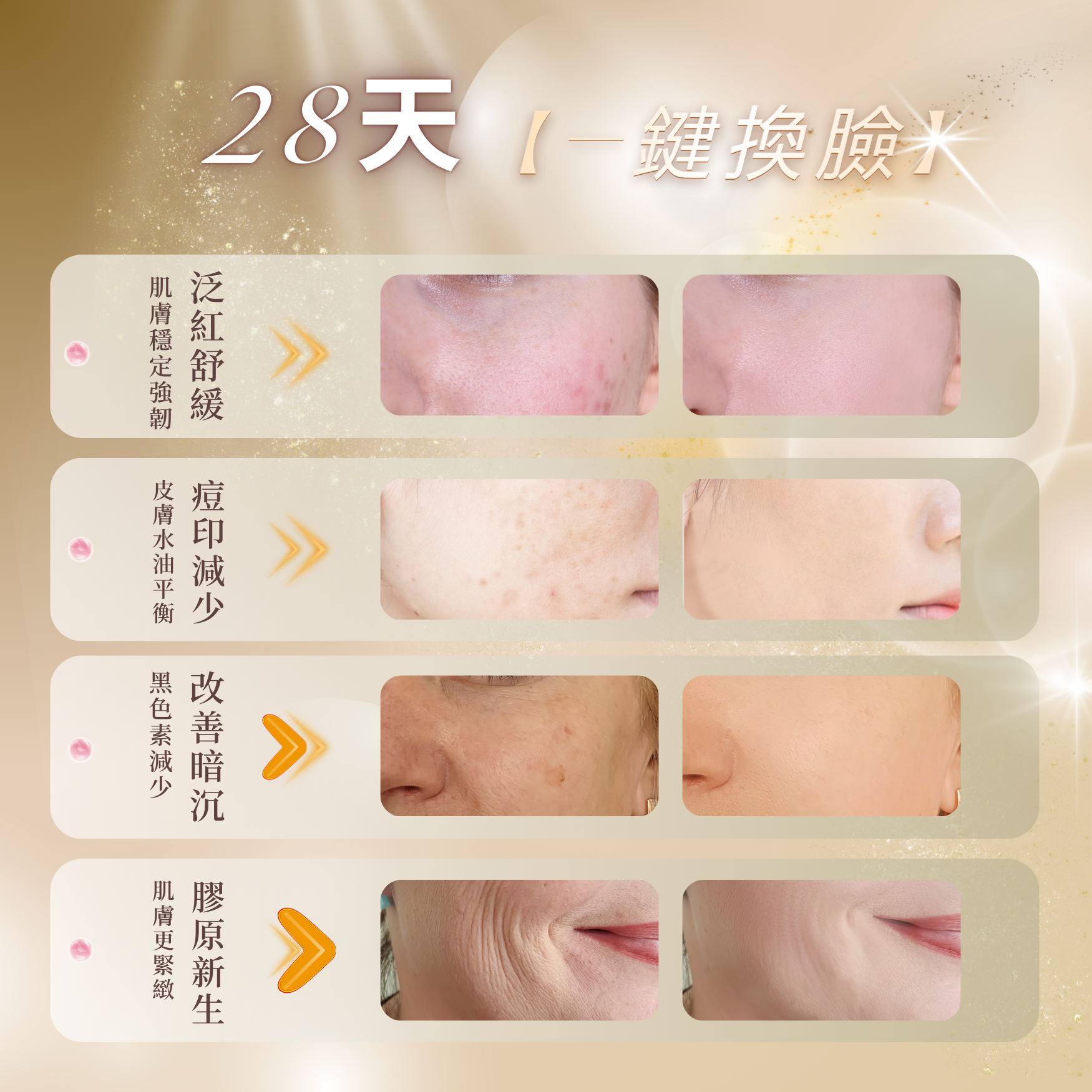 🌟用完28日,一鍵換臉(做到舒緩泛紅、減少痘印、美白、增生膠原)