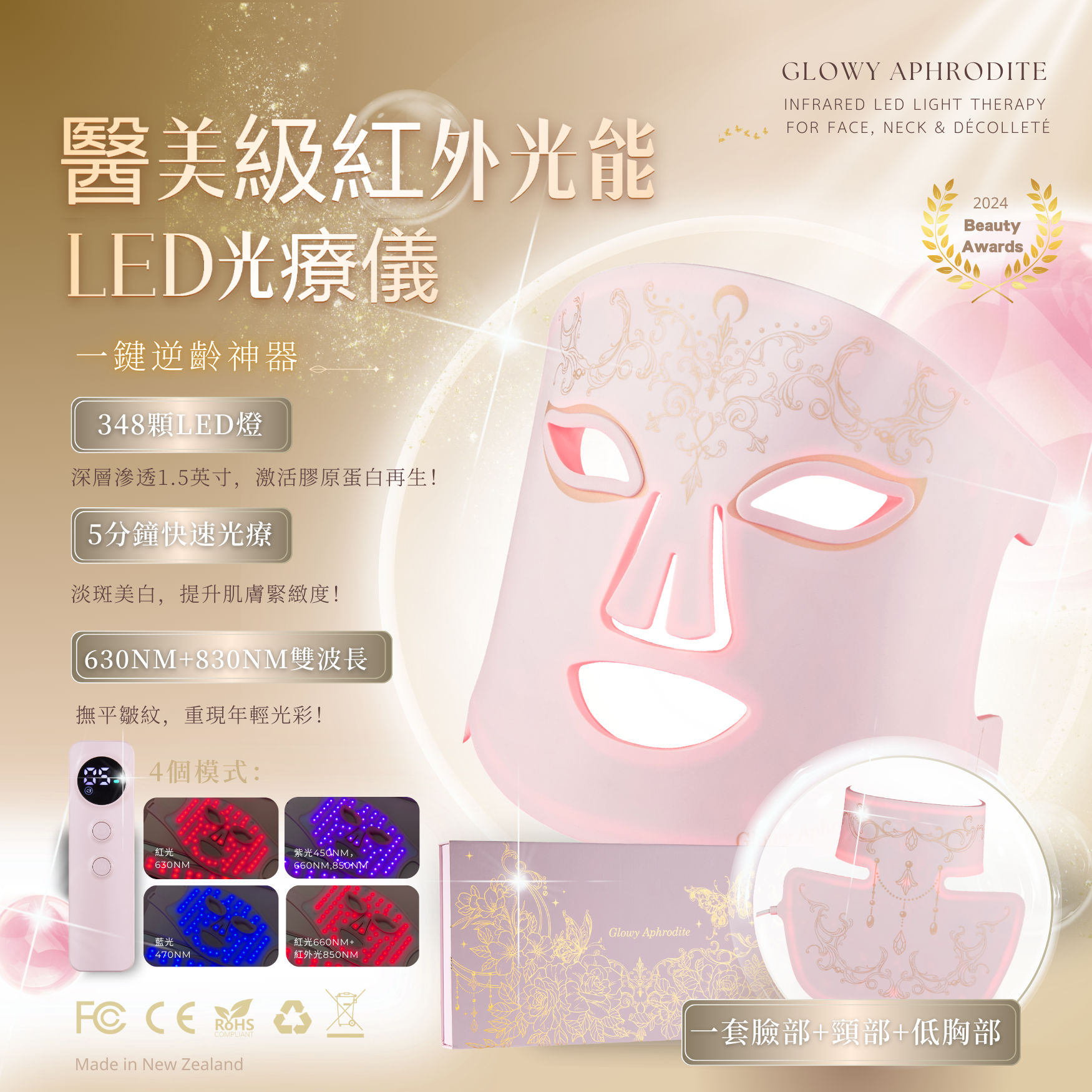 Glowy Aphrodite 紐西蘭醫美級紅外線LED光療儀 (神奇十大功能)(送✨一擊水光美白面膜 +毛孔槍洗面泡)